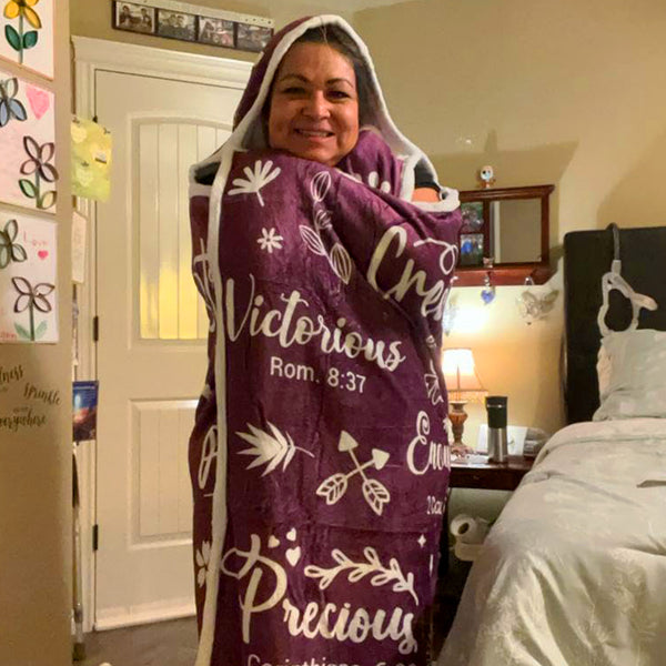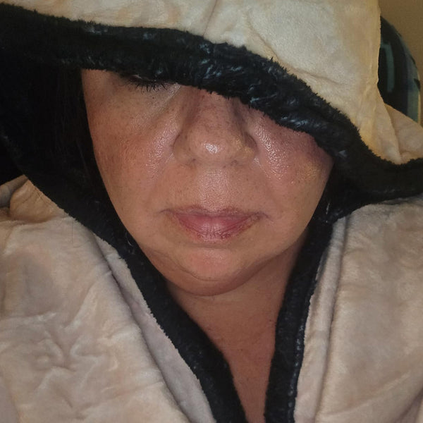 Bought this for my wife and our dog seems to wear it more than she does. She loves it, but Stewie asks to put it on and loves to hide under it while sitting on the couch with us.